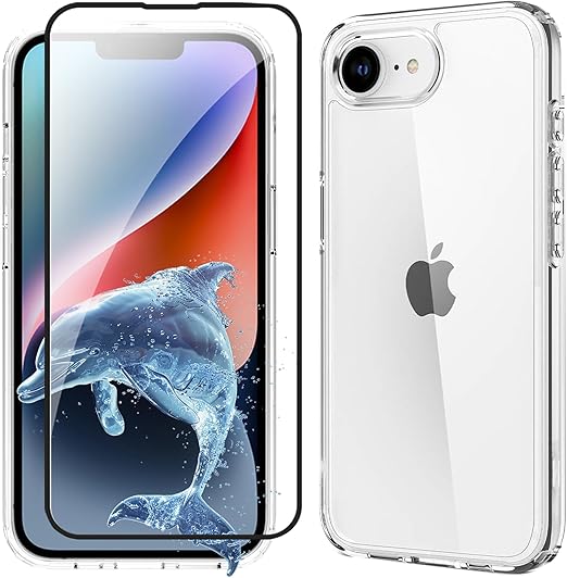 iPhone 16e ケース クリア ガラスフィルム付き 黄変防止 耐衝撃 米軍MIL規格 SGS認証 PC+TPU いPhone 16e/se4 対応 ケース 傷つけ防止 超薄型 軽量 透明 クリアケース スマホケース スマホカバー アイフォン16e 用6.1インチ (クリア, iPhone SE4/16E) a