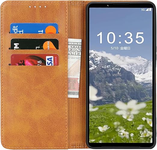対応 Xperia 1 VII ケース 手帳型 スマホケース エクスペリア1 vii SO-51F SOG15 XQ-FS44 カバー 手帳型 カードスロット、キックスタンド レザー(ライトブラウン) a