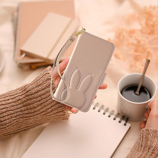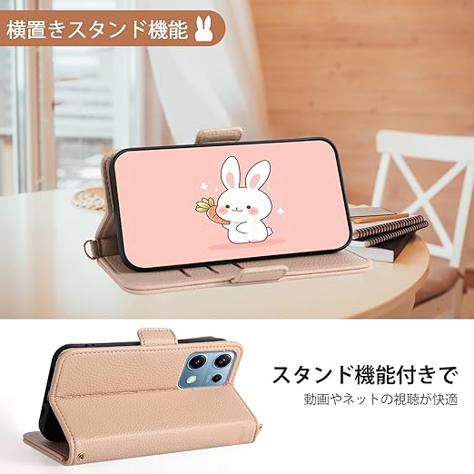 【YIMASE】 対応 Redmi Note 14S ケース 手帳型 かわいいウサギ レドミノート14s ケース 手帳型 全面保護 ブラケット機能 Redmi Note 13 Pro 4G 携帯カバー Xiaomi Poco M6 Pro 4G 携帯カバー レドミーnote14s スマホケース 耐衝撃 財布型 おしゃれ 可愛い カード収納機能,アンズ色 a