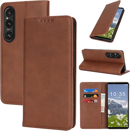 対応 Xperia 1 VII ケース 手帳型 スマホケース エクスペリア1 vii SO-51F SOG15 XQ-FS44 カバー 手帳型 カードスロット、キックスタンド レザー(ダークブラウン) a