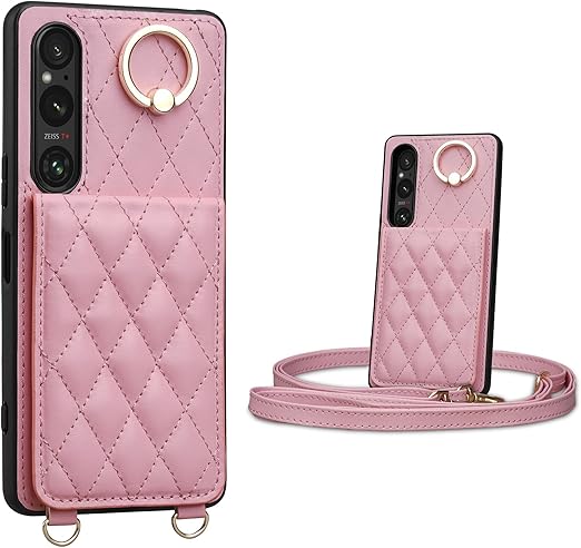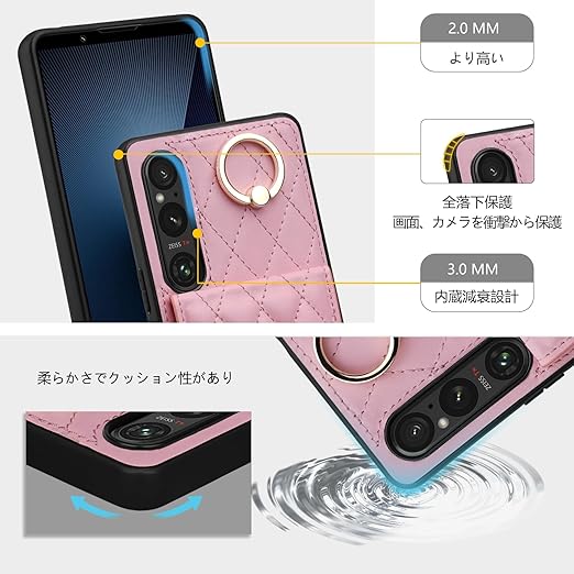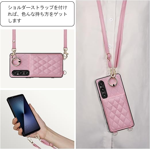Shlybaay Xperia 1 VII 用 ケース 手帳型 背面 カードケース ショルダー ストラップ スタンド機能 キルティング エクスペリア 1 VII 用 カバー SO-51F A501SO カード収納 首掛け 肩掛け PUレザー 6.5inch ピンク a