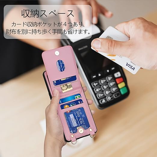 【多機能】? 収納機能:背面に4つのカードポケットがあり、カード、名刺、定期券、免許証、写真などを整理して持ち運べます。マグネット式開閉で、収納物が落ちる心配もありません。シンプルで便利な縦型開閉デザインが特徴です。? スタンド機能