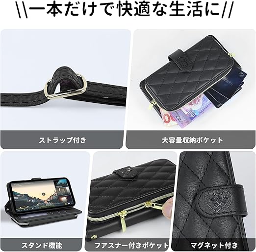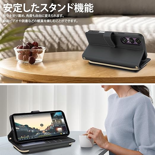 【Succtopy】Xperia 1 VII ケース 手帳型 ショルダー 肩掛け 斜め掛け エクスペリア1 vii ケース手帳型 上質PUレザー 携帯カバー Xperia 1 マーク 7 カバー おしゃれ 刺繍 SOG15 SO-51F 携帯ケース お洒落 大容量収納 カードポケット付き 小銭入れ 財布型 スマホケース スタンド機能 ストラップと首掛け付き 磁気バックル付き(ブラック) a