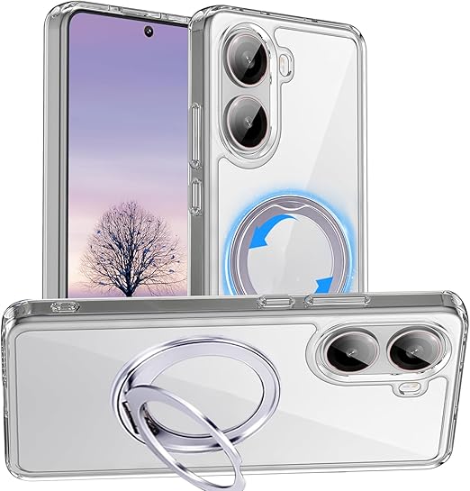 FOR Xiaomi POCO X7 Pro 用 ケース シャオミ POCO X7 Pro カバー Magsafe対応 360°回転スタンド カメラレンズ保護 メタルフレーム 高感度タッチ 隠しスタンドケース 車載ホルダー 対応 ストラップ穴付き 透明 指紋防止 黄?防止(POCO X7 Proクリア) a