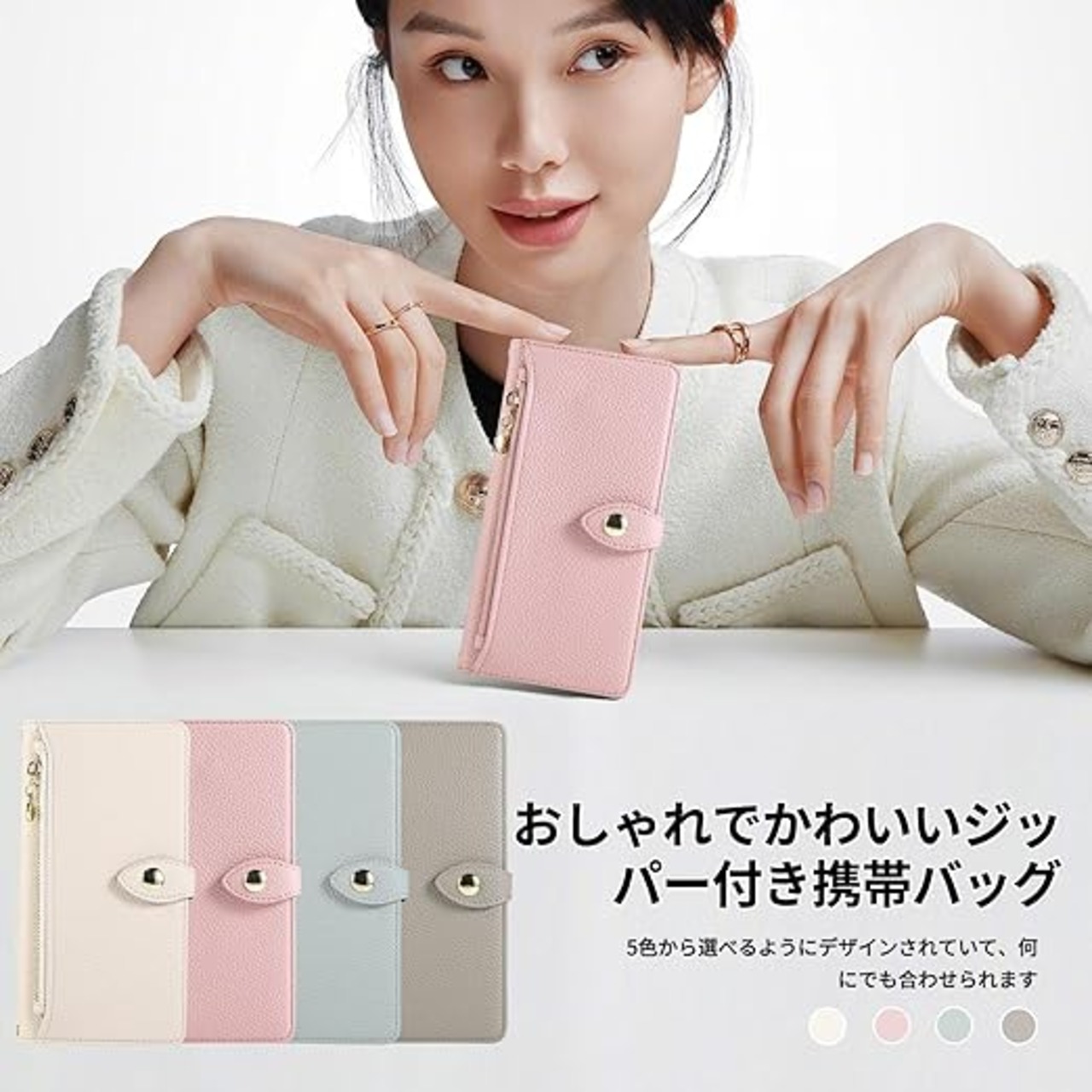 TEDTIKJT Xiaomi Redmi Note 13 Pro ケース 手帳型 redmi note 13 pro 5G ケース 財布型 ファスナー PUレザー カバー スタンド機能 マグネット式 ショルダーストラップ付き ポータブル RedmiNote13 pro 携帯カバー RedmiNote13 Pro 耐衝撃 保護カバー カード収納 ケースカバー ライチ柄 -ピンク a