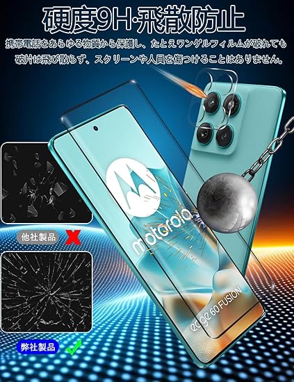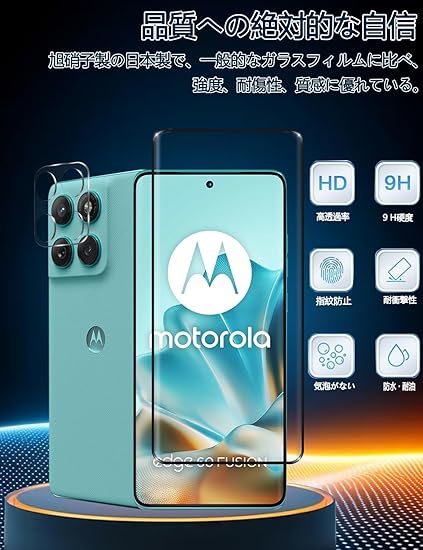 For Motorola EDGE 60 Fusion フィルム- 旭硝子仕様 motorola edge 60 pro/60s pro 用の保護フィルム 2枚 + カメラフィルム 2枚 強化ガラスフィルム 硬度9H 高 透過率 耐衝撃 飛散防止 傷防止 気泡ゼロ 耐指紋 自動吸着 撥油性 a