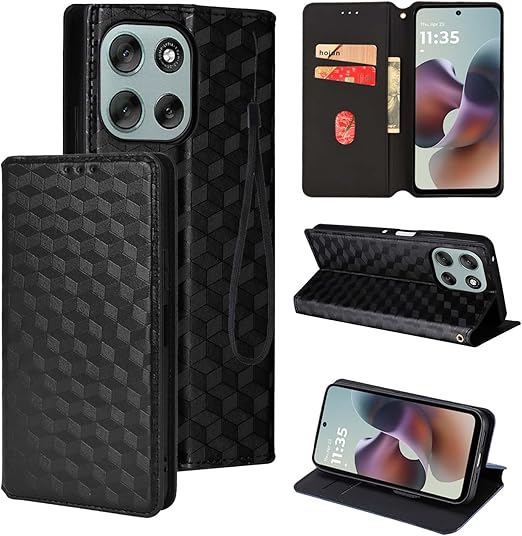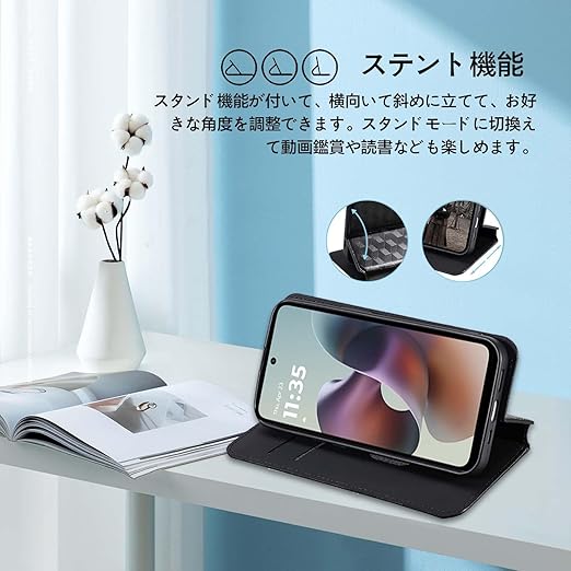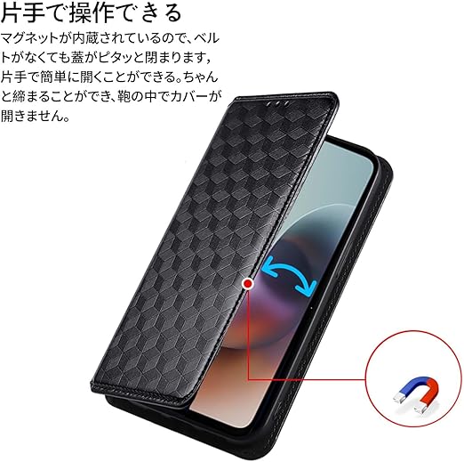 moto g66j 5G 用 対応 ケース 手帳型 スマホケース カード収納 スタンド機能 サイドマグネット【HUKWIMO】 全面保護 衝撃吸収 横置き機能 汗や指紋防止 高級PUレザー 擦り傷防止 moto g66y 5G 対応 [ブラック] a