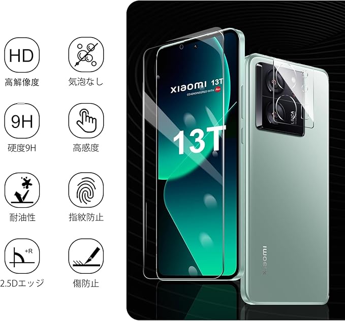 対応 Xiaomi 13T/13T Pro フィルム 保護 ケース 【2枚セット ガラスフイルム+2枚カメラフィルム】 Xiaomi 13T/13T Pro 強化ガラス 気泡レス 貼りやすい スクラッチ防止 超耐久 高光沢 全面保護 a