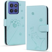 Mldjomid Motorola Edge 60 Pro/Moto Edge 60s Pro ケース 手帳型 moto ケース Edge60Pro カバー 手帳型 モトエッジ 60s プロ case 幸せな子猫 内蔵マグネット カード入れ 軽量 PUレザー 全面保護 スタンド機能カード収納 モトローラエッジ60プロ ケース エレガントなシンプルさ 人気 上質 かわいい猫の足模様(青) a