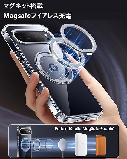 【360°回転スタンド】Xiaomi Poco X7 Pro/Redmi Turbo4 ケースMagSafe対応 シャオミ POCO X7 Pro ケース マグネット搭載 スタンド機能360°回転可能【横縦両立/角度自由調整】 カバー 純正 薄型 クリア 耐衝撃 落下防止 車載ホルダー対応 ワイヤレス充電 全面保護(POCO X7 Proクリア) a