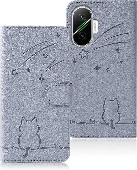 Rosbtib Xiaomi POCO F7 ケース 手帳型 流れ星子猫 シャオミ ポコF7 ケース 可愛い 猫柄 ねこ poco f7 ケースカバー 耐衝撃 オシャレ 軽量 耐久性 SIMフリー対応 pocof7スマホケース スタンド機能 カード収納 PUレザー 内蔵マグネット 着脱しやすい ポコf7 カバー 6.83インチ対応(グレー) a