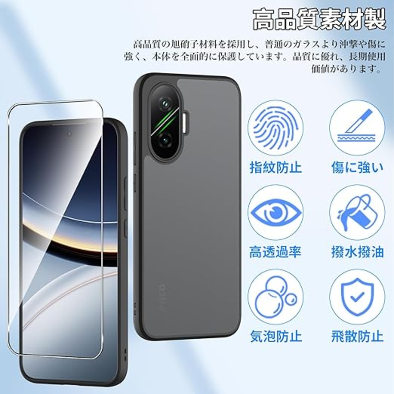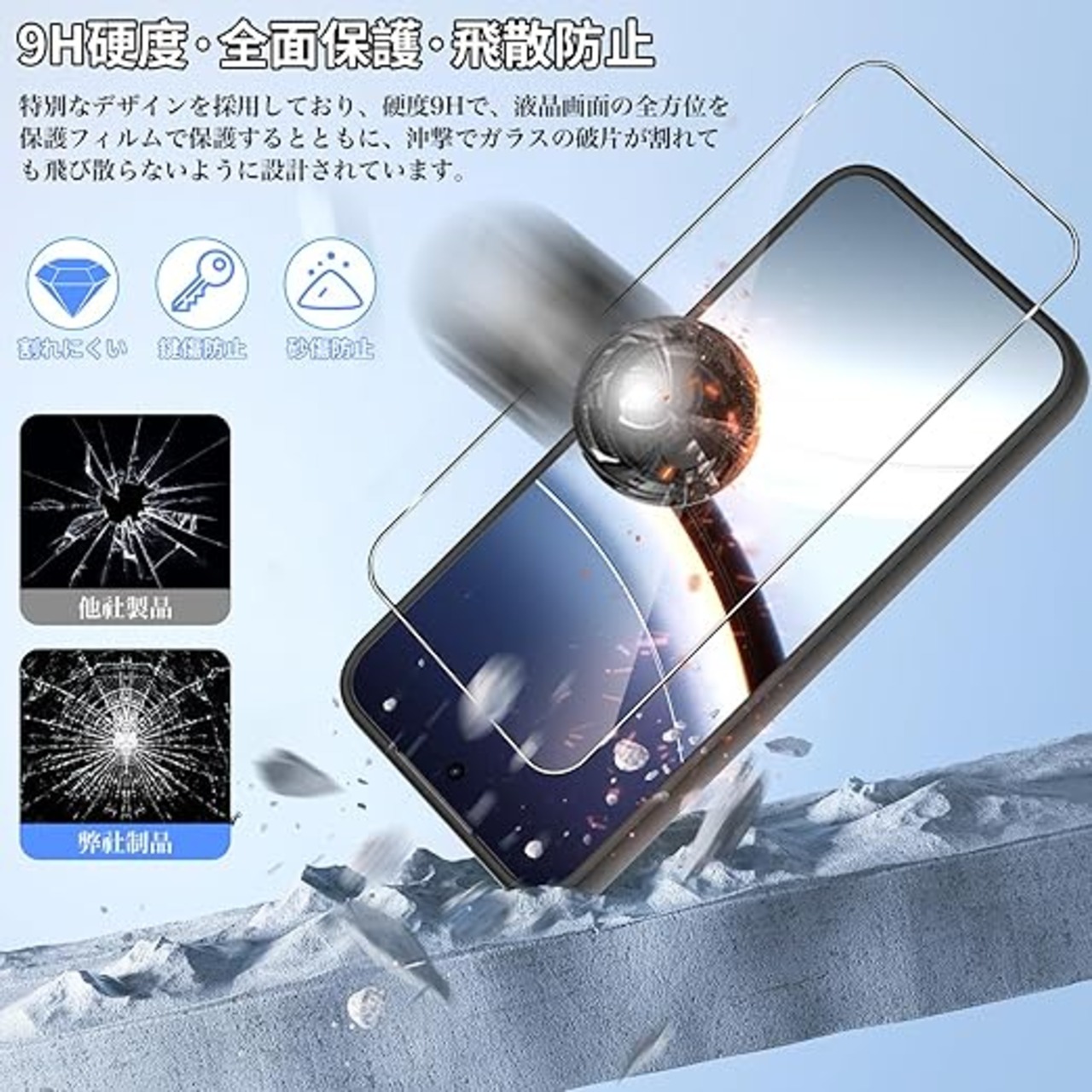 【ガラスフィルム付きの心配りある保護】日本製旭硝子材料を採用し、外部からの沖撃に強く、スマートフォンの画面への沖撃を防ぎます。また、特殊な飛散防止設計により、フィルムが割れても飛散せず、高い安全性を実現しています。ス