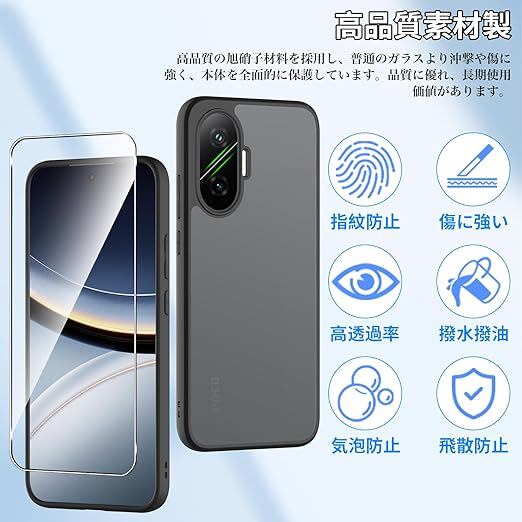【1個+2枚セット】For Xiaomi POCO F7 ケース(1個)+ガラスフィルム(2枚) Greerass 保護ケース ガラスフィルム付き 薄型 超軽量 耐衝撃 擦り傷防止 指紋・汚れ防止 手触り良い 着脱簡単 (ブラック) a