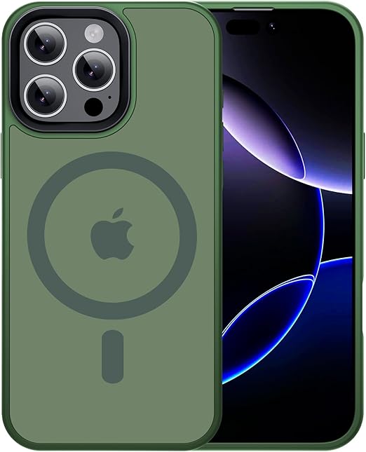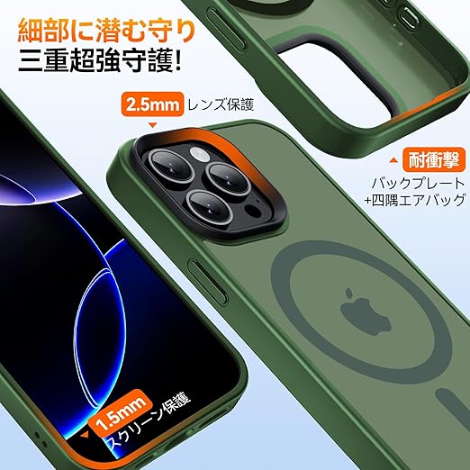 Eiffebill iPhone 15 Pro ケース 【MagSafe対応、マグネット搭載】米軍 MIL 規格の落下保護、耐衝撃 指紋付かず、ストラップホール付き、半透明で黄ばみにくい アイフォン15 Pro 用 ケース(グリーン) a