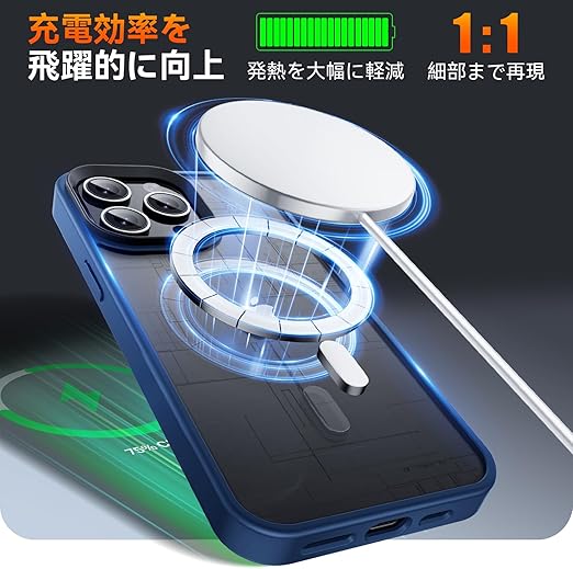 Eiffebill iPhone 15 Pro ケース 【MagSafe対応、マグネット搭載】米軍 MIL 規格の落下保護、耐衝撃 指紋付かず、ストラップホール付き、半透明で黄ばみにくい アイフォン15 Pro 用 ケース(ブルー) a
