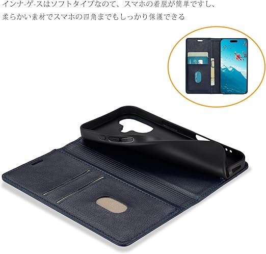 ・高品質のPUレザーを使用しており、柔らかく手触りが良いだけでなく、長時間の使用でも色落ちや劣化を防ぎ、天然皮革のような高級感と柔らかさを持ちながら、耐久性にも優れています。環境にも優しく、さらに耐水性や耐汚れ性も備えています。インナーケースは柔らかいソフトTPU素材を採用して、スマートフォンに完全にフィットするように設計されてい
