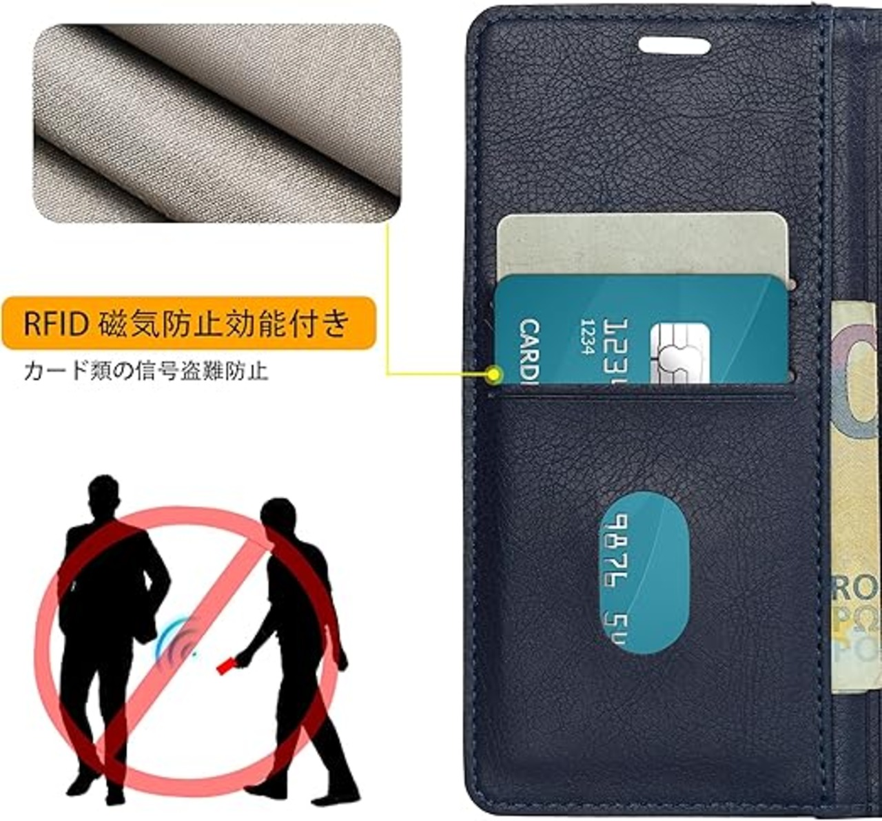 適合するXperia 1 VII ケース SO-51F SOG15ケース 手帳型 so-51fケース sog15カバー case PUレザー RFID磁気防止 スマホケース 内蔵マグネット スタンド機能 カード入れ 薄型 ネイビー a