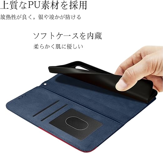 【カード収納】財布型スマホケースの内側には2つのカードポケットが付いています。少量の現金とカード類を携帯することができ、通勤や通学に重いバッグを背負う必要はありません。