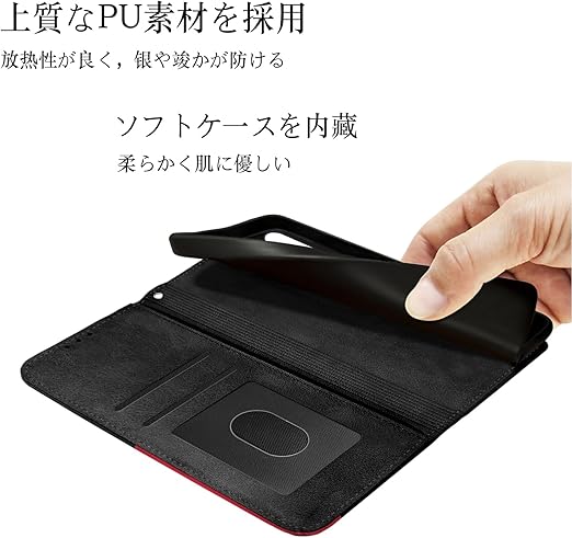 【カード収納】財布型スマホケースの内側には2つのカードポケットが付いています。少量の現金とカード類を携帯することができ、通勤や通学に重いバッグを背負う必要はありません。