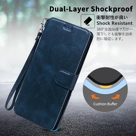 【ポイント1:高品質PUレザー】薄型で軽量化のスマホケースです。外側のカバーには手触りがとても良い高品質の合成レザーを採用します。内側のスマホホルダーは柔軟なTPU素材を採用したソフトケースとなります。汚れにくくて指紋防止の特徴を持っております。耐衝撃の二重構造で落下の衝撃をうまく吸収します、本体をしっかりと守ります。