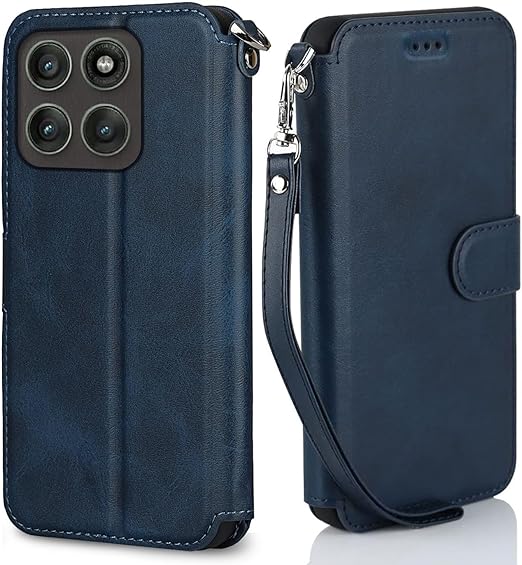 MOTOROLA用 Moto edge 60 pro ケース 手帳型 Moto edge 60s pro 通用 モトローラ エッジ60プロ SIMフリー モト エッジ60sプロ SoftBank ストラップケース モト edge60pro edge60spro 携帯カバー 耐衝撃 手帳 カード入れ 適用 Cobeimisr CASE 軽量 薄型 薄型ケース ストラップ スマホケース ネイビー a