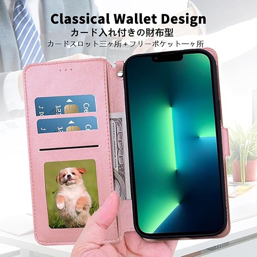 【ポイント1:高品質PUレザー】薄型で軽量化のスマホケースです。外側のカバーには手触りがとても良い高品質の合成レザーを採用します。内側のスマホホルダーは柔軟なTPU素材を採用したソフトケースとなります。汚れにくくて指紋防止の特徴を持っております。耐衝撃の二重構造で落下の衝撃をうまく吸収します、本体をしっかりと守ります。
