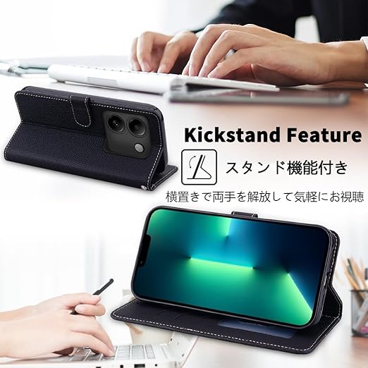 【特徴1:高品質PUレザー】軽量化のスマホケースです。外側カバーには滑り止めのライチ模様のPUレザーを採用します。内側のホルダーは柔軟なTPU素材を採用したソフトケースです。汚れにくくて指紋防止の特徴を持っております。耐衝撃の二重構造で落下の衝撃をうまく吸収します、本体をしっかりと守ります。