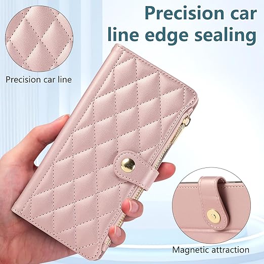 Rosbtib Motorola Edge 60 Pro ケース 手帳型 Motorola Edge 60s Pro ケース 財布型 カバー モトローラedge60s pro ケースカバー おしゃれ ファスナー型 小銭入れ カード収納 携帯カバー SIMフリー対応 モトローラ エッジ60Sプロ スマホケース ストラップ付 肌触り良い マグネット式 スタンド機能 全面保護(ピンク) a