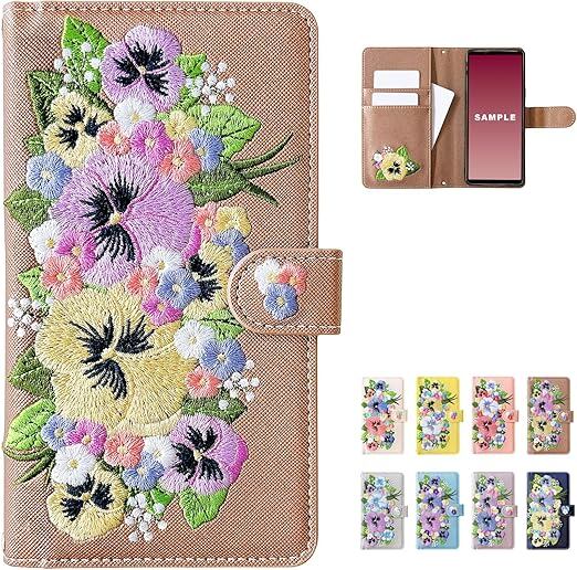 Xperia 1 VII 専用 SO-51F SOG15 A501SO XQ-FS44 ケース カバー 手帳型 SO-51Fケース SO-51Fカバー SOG15ケース SOG15カバー エクスペリア Xperia1VII ハンドあり パンジー 刺繍 ブロンズ a