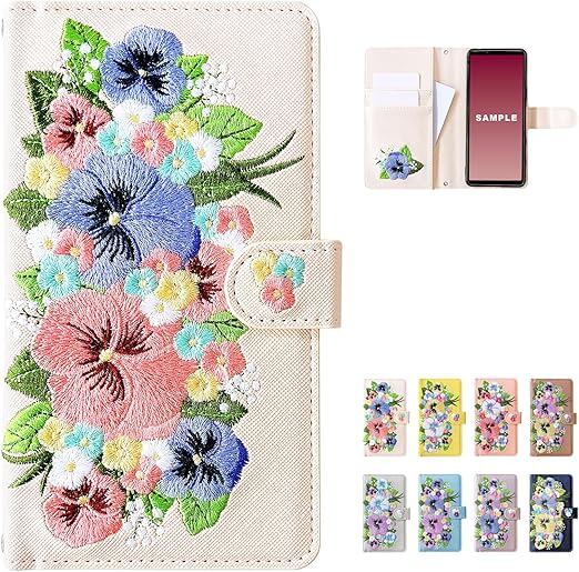 Xperia 1 VII 専用 SO-51F SOG15 A501SO XQ-FS44 ケース カバー 手帳型 SO-51Fケース SO-51Fカバー SOG15ケース SOG15カバー エクスペリア Xperia1VII ハンドあり パンジー 刺繍 アイボリー a