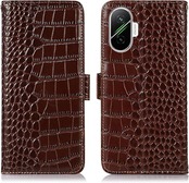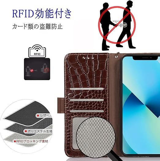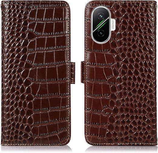 for Xiaomi POCO F7 ケース 手帳型 本革 ワニ柄 シャオミ poco f7 牛革 財布型 鰐柄 クロコダイル柄 耐衝撃 [RFIDブロッキング] カード収納 マグネット式ボタン 横置きスタンド機能 便利 財布型携帯 スマホケース ダークブラウン Rureu b