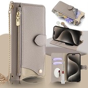QANKISIS for xiaomi poco f7 ケース 手帳型 財布型カバー マグネット留め ポコf7 カバー 鏡付き 銭入れ マグネット式 化粧鏡 カード収納 斜めがけ ストラップ 首掛け PUレザー 肩掛け 横置きスタンド機能 携帯カバー 全面保護 ファッション 6.83インチ(グレー) a