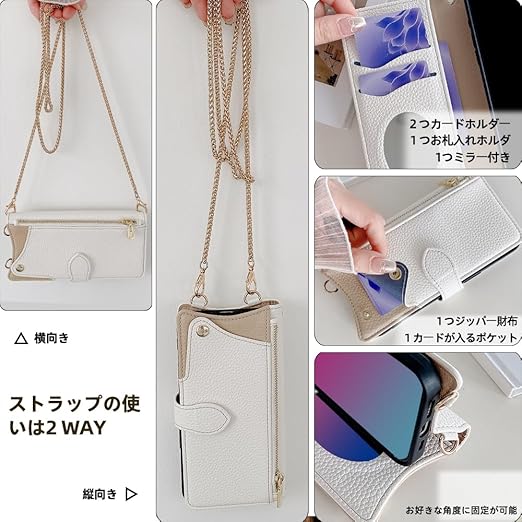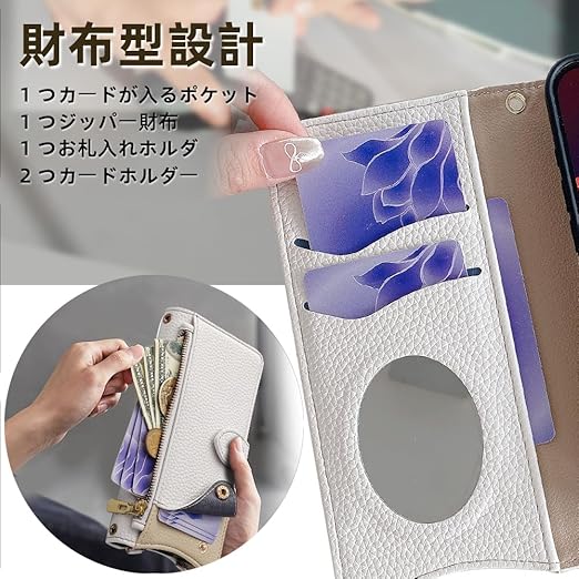 QANKISIS for xiaomi poco f7 ケース 手帳型 財布型カバー マグネット留め ポコf7 カバー 鏡付き 銭入れ マグネット式 化粧鏡 カード収納 斜めがけ ストラップ 首掛け PUレザー 肩掛け 横置きスタンド機能 携帯カバー 全面保護 ファッション 6.83インチ(ホワイト) a