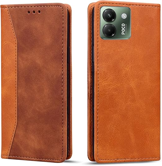 Torske と互換性のある Xiaomi POCO M7 Pro 5G スマホケース 手帳型 POCO M7 Pro ケース pocom7pro手帳型ケース 内蔵マグネット開閉式 ベルトなし ポコm7pro ケース カードポケット 防水 折り畳み式 横置き機能 便利 携帯ケース (褐色) a