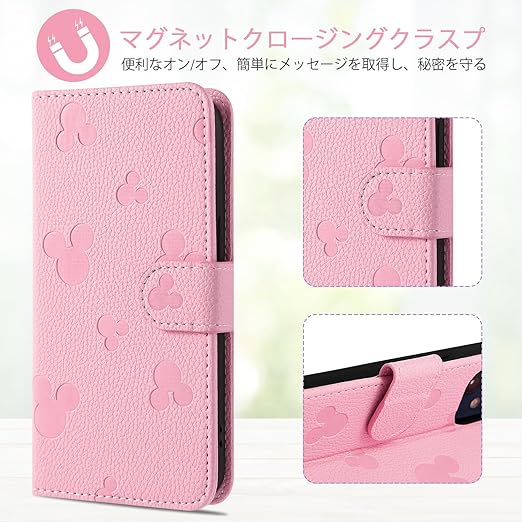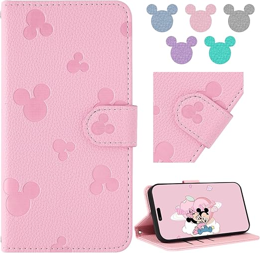 【Qribo】用の Xiaomi POCO M7 Pro 5G ケース 手帳型 無地のかわいいクラシックなミッキーのアバター 財布 軽量 薄型 マグネット式 携帯カバー カード収納 スタンド機能 ポコm7pro ケース 衝撃吸収 活気のある雰囲気 POCO M7 Pro スマホケース 放熱性 折りたたみ 6.67インチ【ピンク】 a