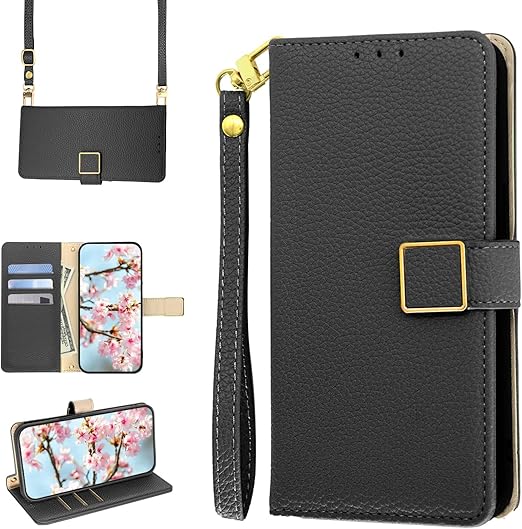 Mldjomid Motorola Edge 60 Pro 用 ケース 手帳型 モトローラ Edge 60s Pro ケース 財布型 カード収納 い モトローラ エッジ60プロ ケース ショルダー 小銭入れ 斜めがけ 肩掛け スマホケース スタンド機能 スクエアマグネット留め具 Motorola対応エッジ60sプロ 携帯カバー 高級PUレザー ライチ柄エンボライン 全面保護 (ブラック) a