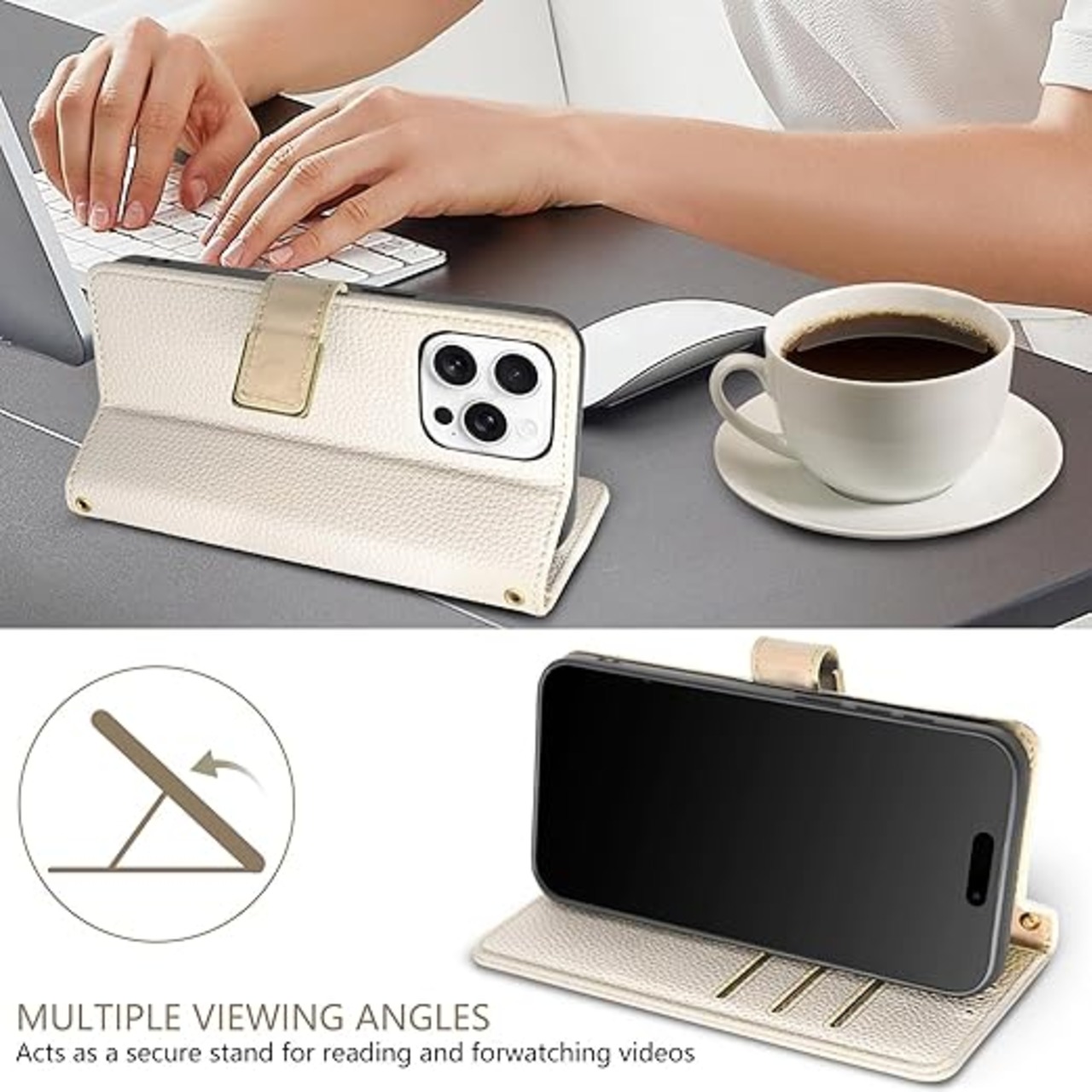【高品質の素材と耐衝撃性】ケースは、肌のような PU レザー + 柔軟な TPU シェルの組み合わせを採用し、360° 保護を提供し、快適な感触、優れた