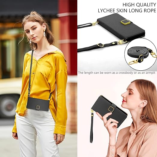 Mldjomid Xiaomi POCO F7 用 ケース 手帳型 ポコf7 ケース 財布型 カード収納 い シャオミポコf7 5G ケース ショルダー 小銭入れ 斜めがけ 肩掛け スマホケース スタンド機能 スクエアマグネット留め具 用のSIMフリー 6.83インチ Xiaomi POCO F7 携帯カバー 高級PUレザー ライチ柄エンボライン 全面保護 ファッション人気 (ブラック) a