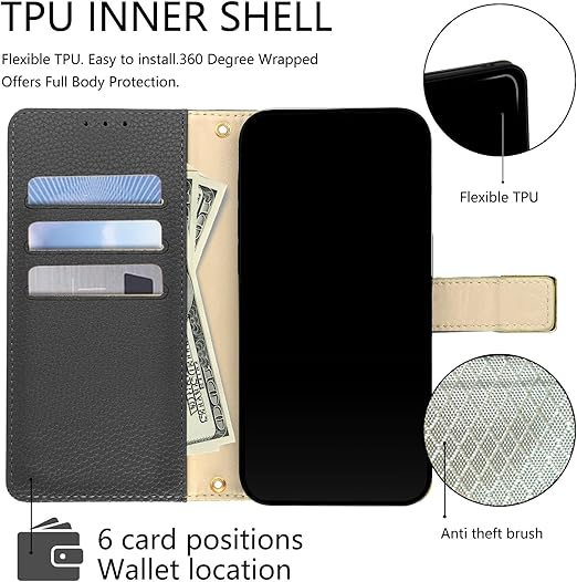 【高品質の素材と耐衝撃性】ケースは、肌のような PU レザー + 柔軟な TPU シェルの組み合わせを採用し、360° 保護を提供し、快適な感触、優れた