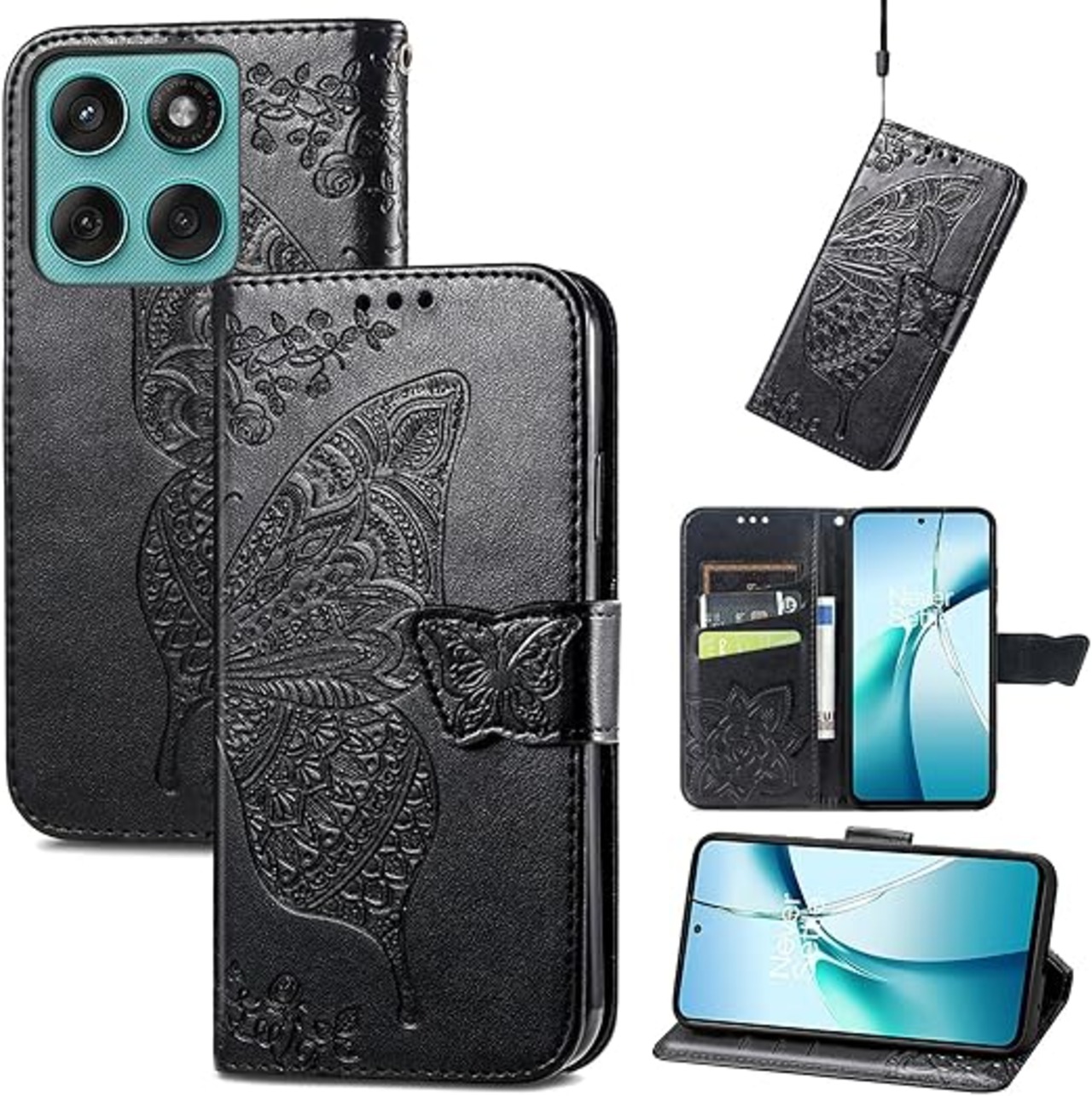 に適用するmotorola edge 60 pro / 60s pro ケース 手帳型 ノートブック型携帯電話保護カバー多機能ホルスター財布ホルダーバンプパターンテクスチャ耐久性摩擦耐性ケース男性と女性に適した (バタフライ黒) a