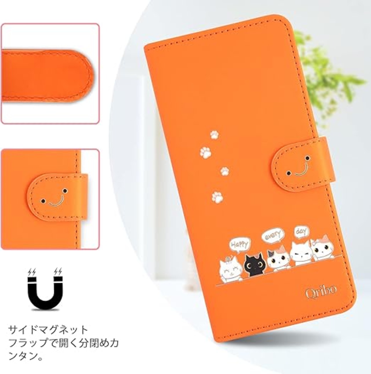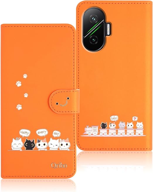 Qribo 適用の Xiaomi Poco F7 ケース 手帳型 Redmi Turbo 4 Pro 手帳ケース シンプルなのに可愛いデザイン エンボス加工猫柄 うれしい気持ち 6.83インチ対応 Redmi Turbo4 Pro 5G ケース pocof7 カバー ポコ f7 スマホカバー 薄型 防水 の耐久性 滑り防止 美しい 贈り物 友達 - オレンジ a