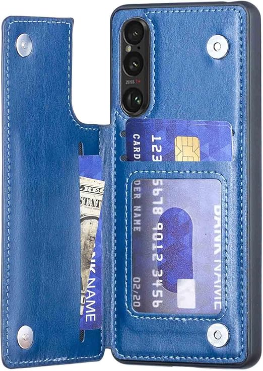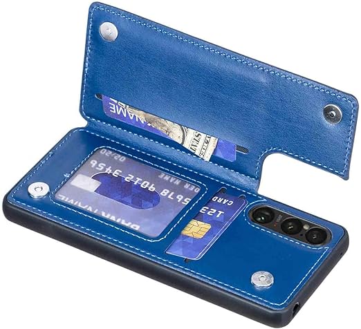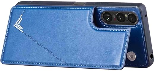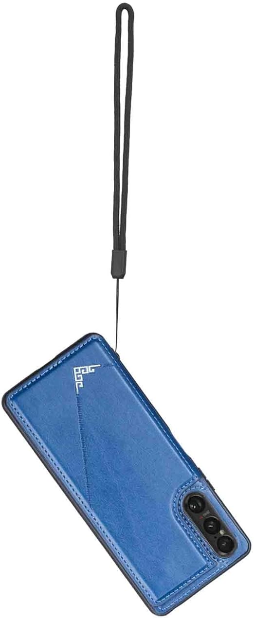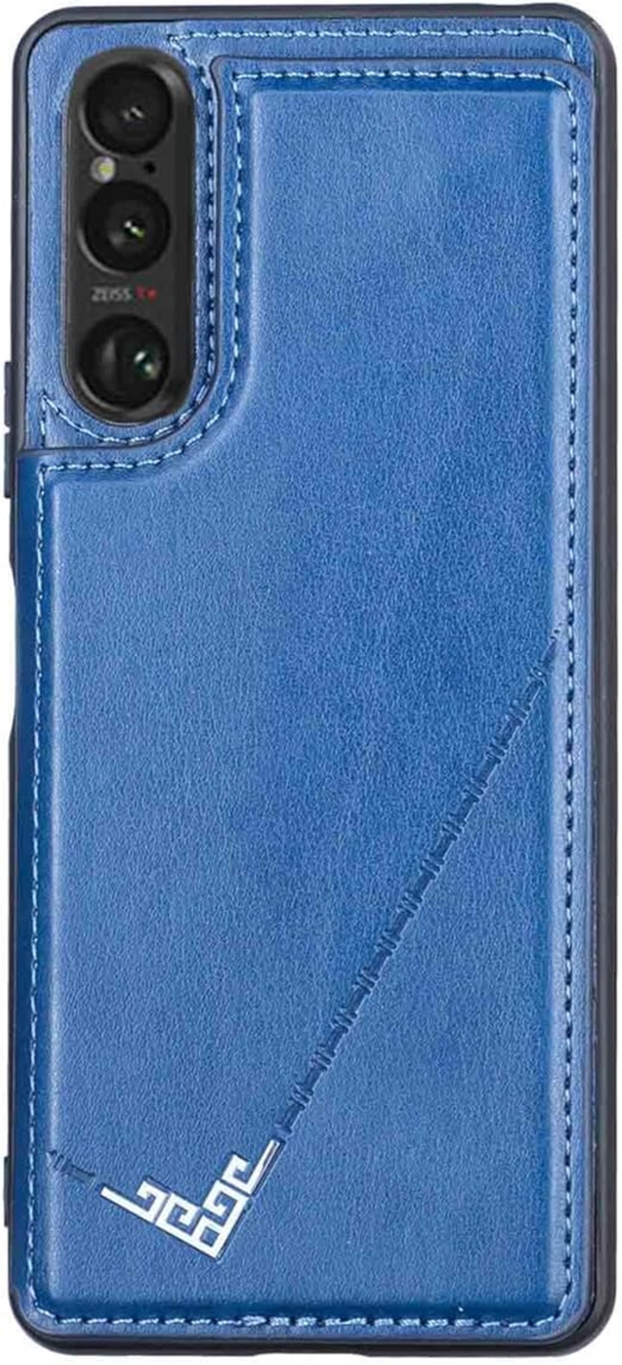 for Xperia 1 VII SO-51F ケース スタンド機能 ICカード収納 カード収納 シンプルなレトロなファッション、防水と防汚、多機能財布収納 (ブルー) a