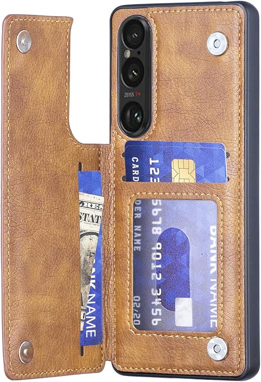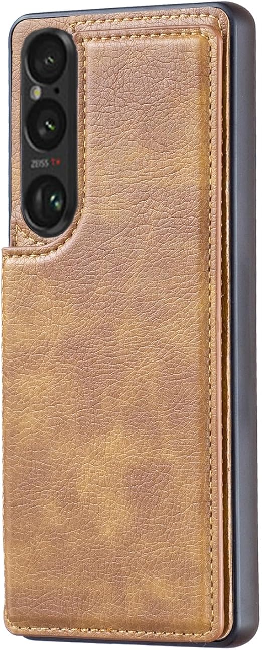 for Xperia 1 VII SO-51F ケース スタンド機能 ICカード収納 カード収納 シンプルなレトロなファッション、防水と防汚、多機能財布収納(ブラウン) a