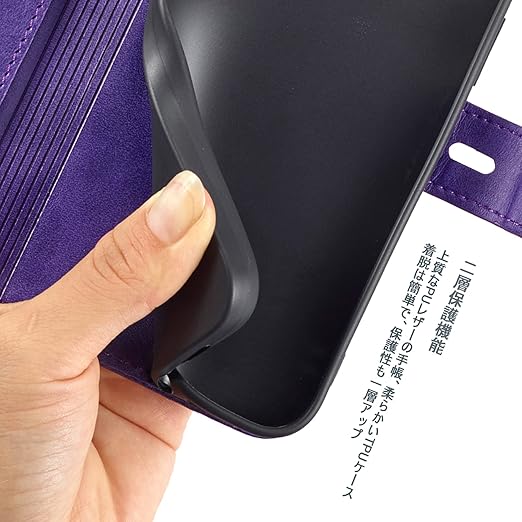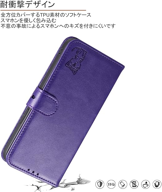 ?【耐衝撃性】耐熱性と柔軟性を誇る上質なPUレザーで作られ、手触り良い、落下時の衝撃を効率的よく吸収できるようにケースの各コナーの裏側が設計されています。丈夫でほど良い厚みで、落としてもスマホをきちんとお守れます。