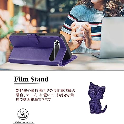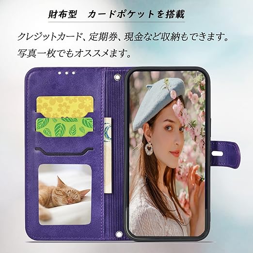 ?【機能性 4in 1】①横置きスタンド機能:お好きな角度で動画鑑賞や読書などを楽しめます;②財布型:ケースの裏側に 3つのカードポケット, お札入れのフリーポケット一つ、名刺