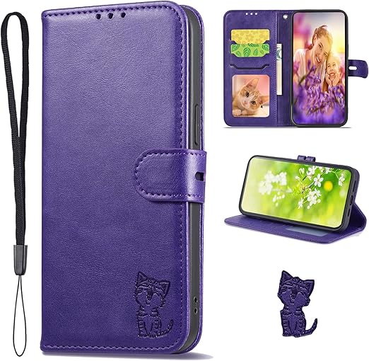 iPhone17Air ケース 手帳型 アイフォン17エア カバー あいふぉん手帳型 携帯ケース iPhonecase スマホケース スマホカバー 携帯カバー ストラップ付き カード収納 財布型 ベルトマグネット スタンド機能 かわいい 猫 耐衝撃 全面保護 (iPhone 17 Air 対応) パープル a
