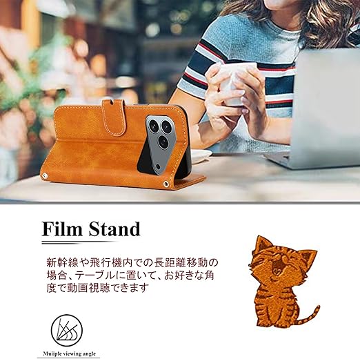 iPhone17 Pro Max ケース 手帳型 iPhone17 ProMax カバー あいふぉん手帳型 アイフォン 携帯ケース iPhonecase スマホケース スマホカバー 携帯カバー ストラップ付き カード収納 財布型 ベルトマグネット スタンド機能 かわいい 猫 耐衝撃 全面保護 (iPhone 17 ProMax 対応) ライトブラウン a