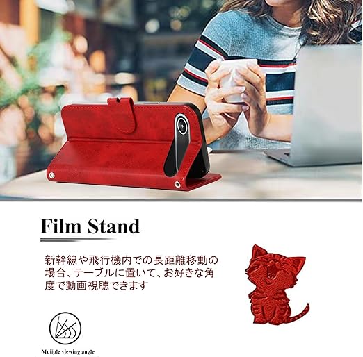 ?【機能性 4in 1】①横置きスタンド機能:お好きな角度で動画鑑賞や読書などを楽しめます;②財布型:ケースの裏側に 3つのカードポケット, お札入れのフリーポケット一つ、名刺