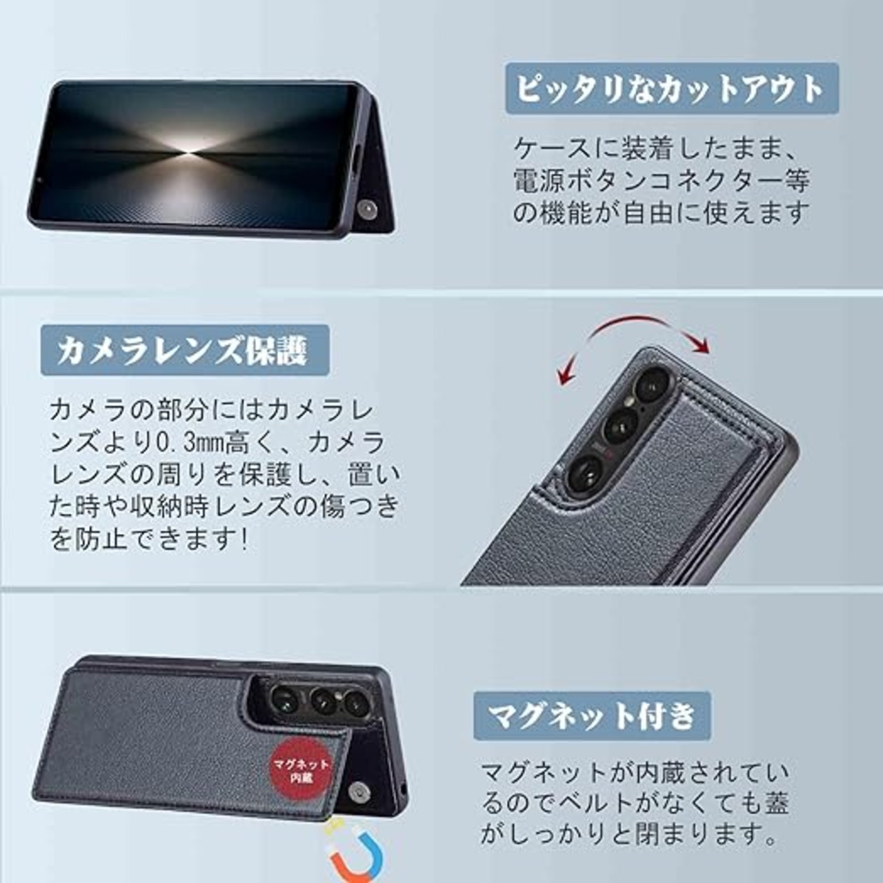 【注意】機種通用:SONY Xperia1 VII/SO-51F/XQ-FS44/SOG15/A501SO(NFC 対応カードは、一枚だけ使用し、チップ面を上にして ID ウィンドウに入れて下さい、スマホカバーとペアで使用することがおすすめです。)