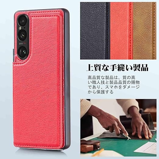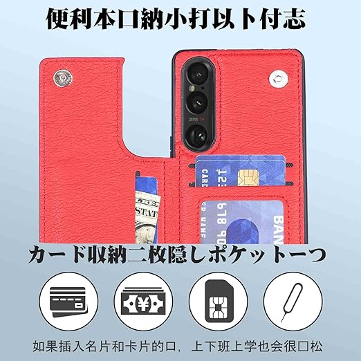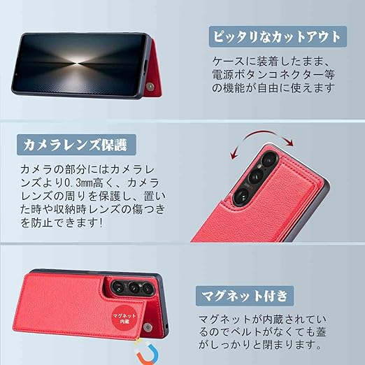 【Aqier】For Xperia1 VII/SO-51F/XQ-FS44/SOG15/A501SO 用 背面ケース(レッド)エクスペリア1vii ケースカード入れ 片手操作 バック?カバー ソニーsog15 赤色 a